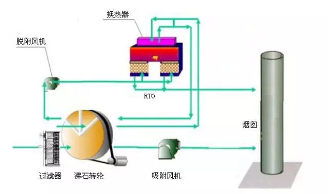 沸石轉(zhuǎn)輪-蓄熱氧化工藝流程示意圖